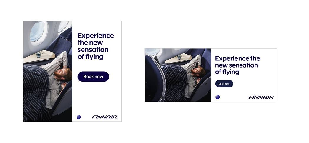 Finnair logo and oneworld logo appear together in closing view of the video. Finnair logo is placed on top of oneworld logo. The same rule applies to 16:9 format, vertical and square videos. For application details, please see video guidelines.