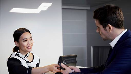 Finnair Blue and Finnair White can also be used for separating certain areas, so that it fills the entire area from top to bottom. Reference to relaxing and activity zones. Finnair Blue is also tied with the more exclusive priority services. The more exclusive the surroundings (e.g. Business Class, Platinum Wing lounge), the greater role blue takes in the space as well.